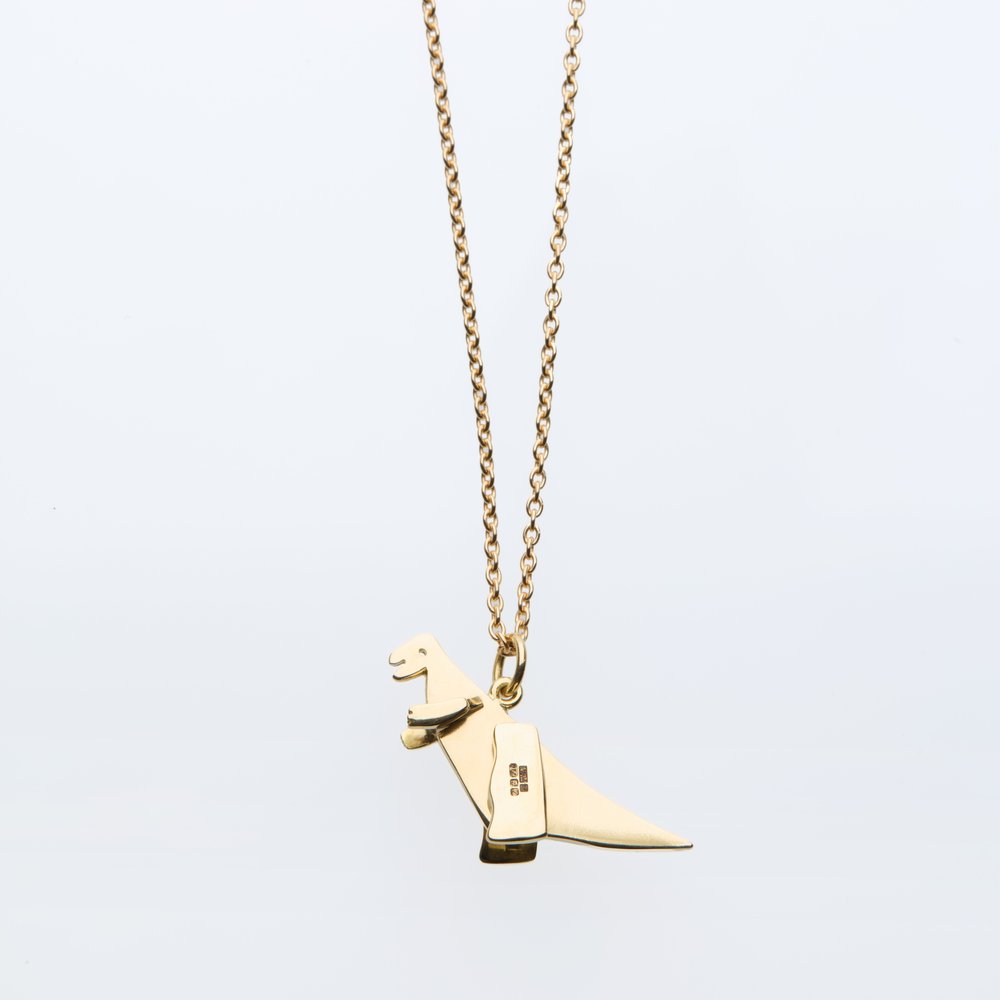 18 carat gold dinosaur on a 18 carat gold chain